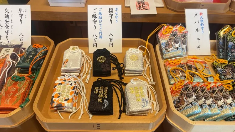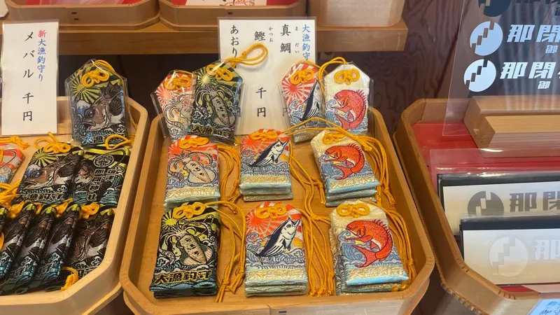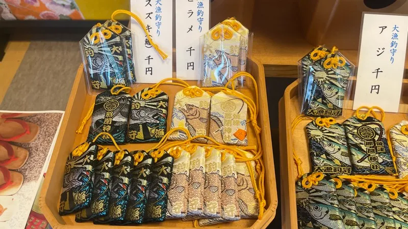 - お守りの種類が豊富で「大漁釣守り」が人気
